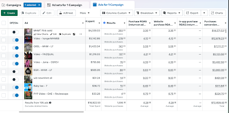 - Uploads the creatives from the graphic designer and video editors into the ad account, monitors and documents which ads are performing the best in order to make variations